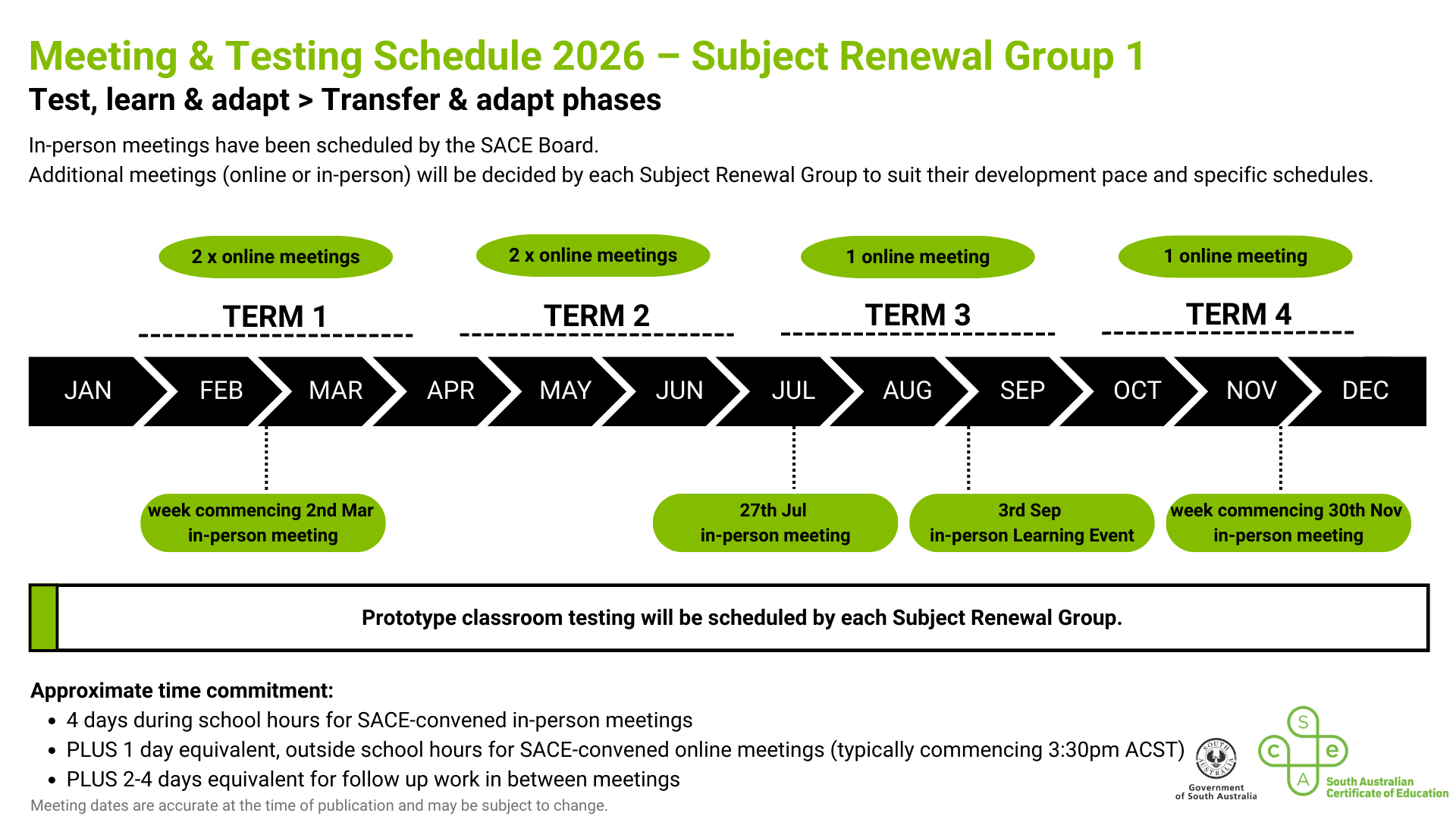 Bring together diverse subject teachers from all schools to form Subject Renewal Groups (SRGs) with up to 12 teachers per SACE subject.